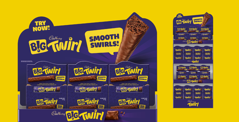 The main objectives were to create excitement around the new format, reinforce Twirl’s core brand identity and communicate a more indulgent, treat-worthy experience. B! Brand was tasked with differentiating the “Big Twirl” bar from the iconic twin bar by leveraging core brand assets and highlighting its chocolate swirls, aiming to boost relevance for younger consumers, shelf impact and instant brand recognition.