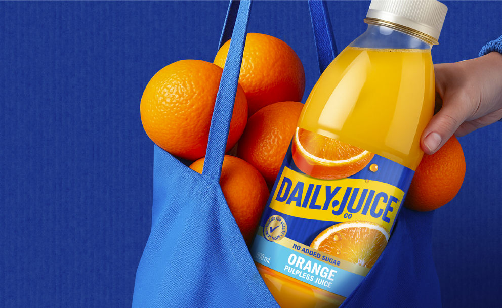 Daily Juice faced the challenge of rising costs and supply pressures while maintaining consumer confidence. With refreshed formulations for improved taste B! Brand was asked to evolve the packaging to emphasise freshness, modernity and appetite appeal ensuring the brand stood out and reinforced its trusted presence on shelf.
