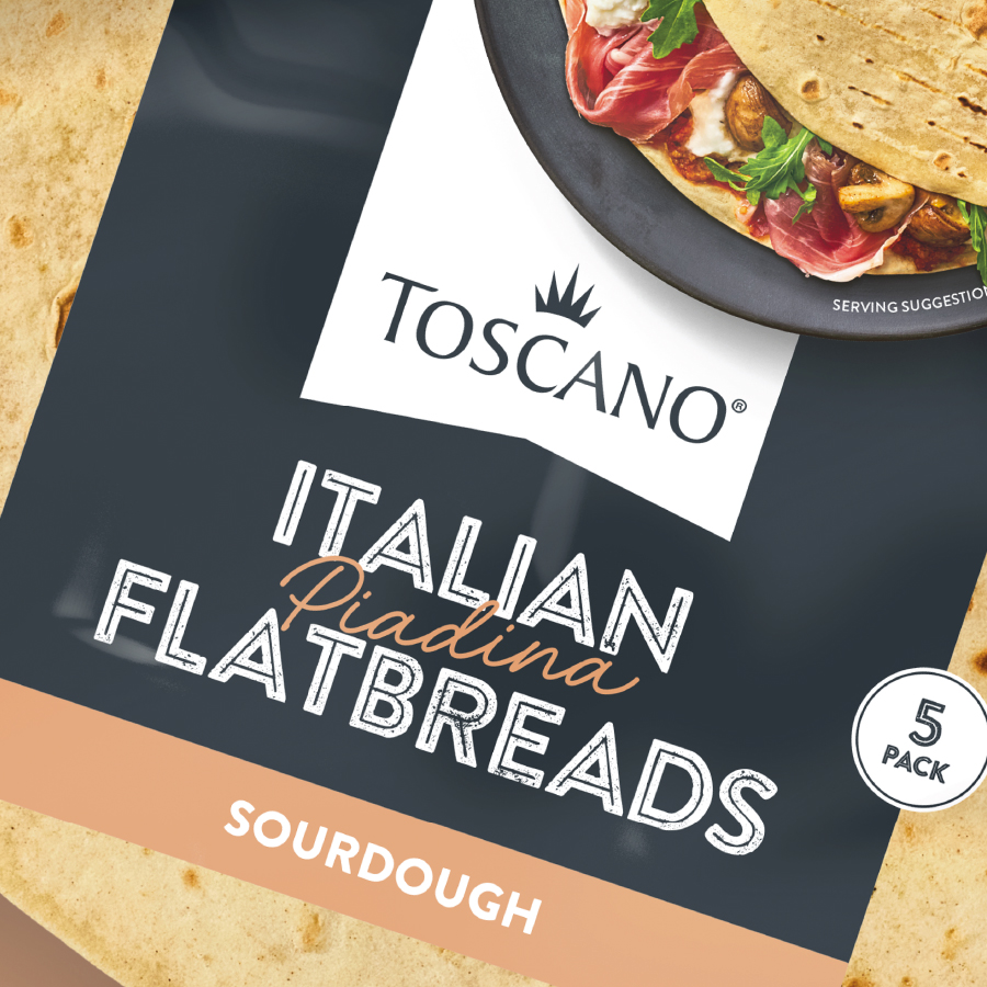 B! Brand was tasked with launching a new Italian Flatbread range that would stand out while staying true to Toscano’s heritage. The new range needed strong appetite appeal, distinct flavour differentiation and authentic Italian provenance, communicated through a non-traditional packaging format. The goal was to maximise design impact while preserving both brand and product shelf presence.