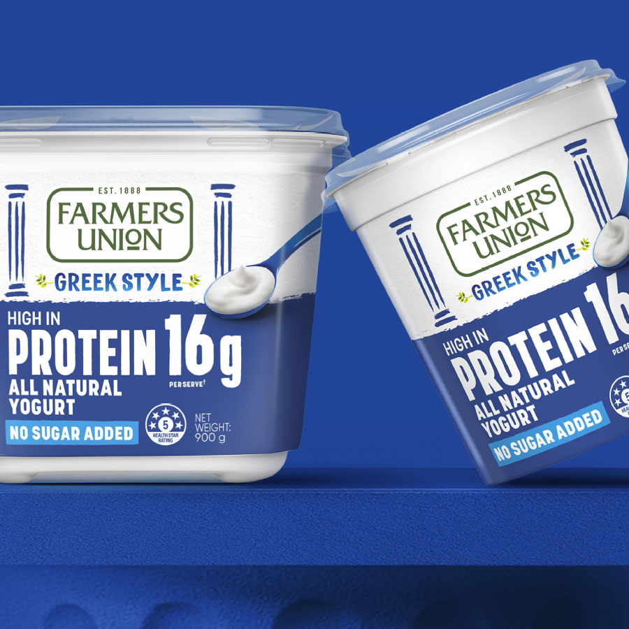 As one of Australia’s most iconic dairy brands, Farmers Union set out to refresh its Greek Style Yogurt to meet evolving consumer and sustainability expectations. Teaming up with B! Brand, the challenge was to modernise its look and packaging while honouring its heritage creating a unified, contemporary identity to drive relevance and growth.