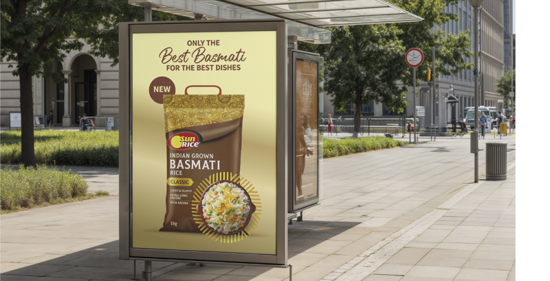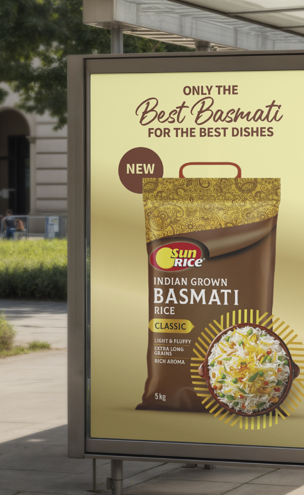 Recognised as a trusted household name, SunRice is exploring innovative ways to engage with consumers outside the traditional retail space. B! Brand helped bring the appeal of SunRice Indian Basmati Rice Classic, SunRice Indian Basmati Rice and SunRice Premium Australian Jasmine Rice The campaign came to life through dynamic Out of Home activations, sparking interest and connection with a new wave of rice enthusiasts.