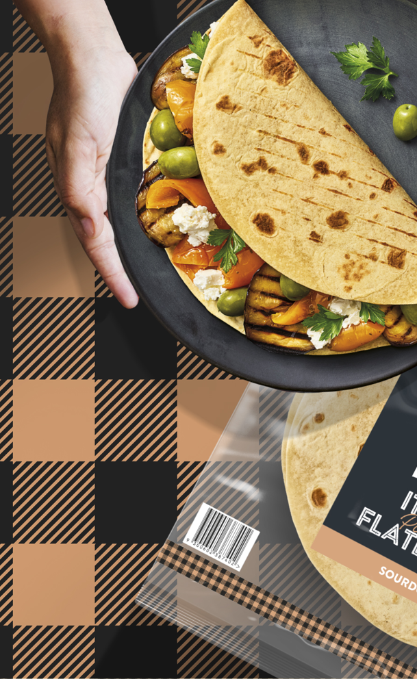 B! Brand created a distinctive, appetite-driven design for the Toscano Italian Flatbreads, using bold variant callouts, enticing photography and clear ‘heat, fill & fold’ instructions to enhance shelf standout, inspire use and maintain brand consistency.
